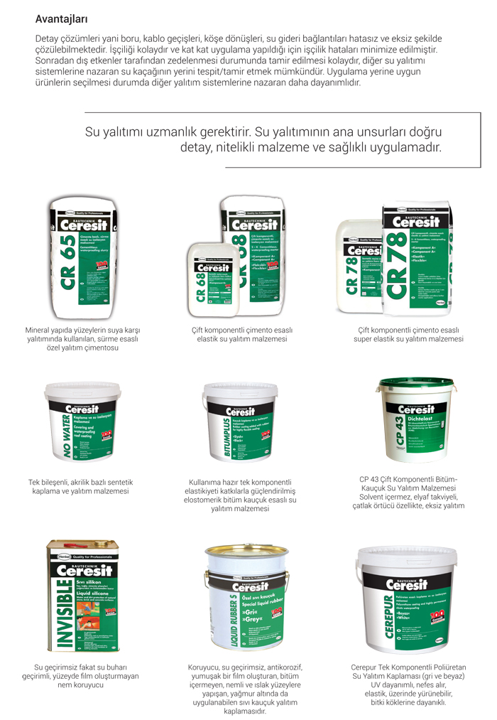 Likit halde sürülerek uygulanan, uygulandığı yerde süratle kuruyarak eksiz ve su geçirimsiz bir izolasyon tabakası oluşturan ürünler ile yapılan uygulamalardır. Sürme esaslı olarakyapıların su izolasyonu gerektiren bölgelerinde detayına uygun akrilik, bütüm, çimento, kauçuk, poliüretan hammaddeleriyle üretilmiş yapı kimyasallarıdır. Sürme esaslı malzemelerle yapılan uygulamalar eksiz ve bir bütün oluşturmaktadır. Yani su kaçağının oluşabileceğin en küçük nokta dahi kalmamaktadır.
